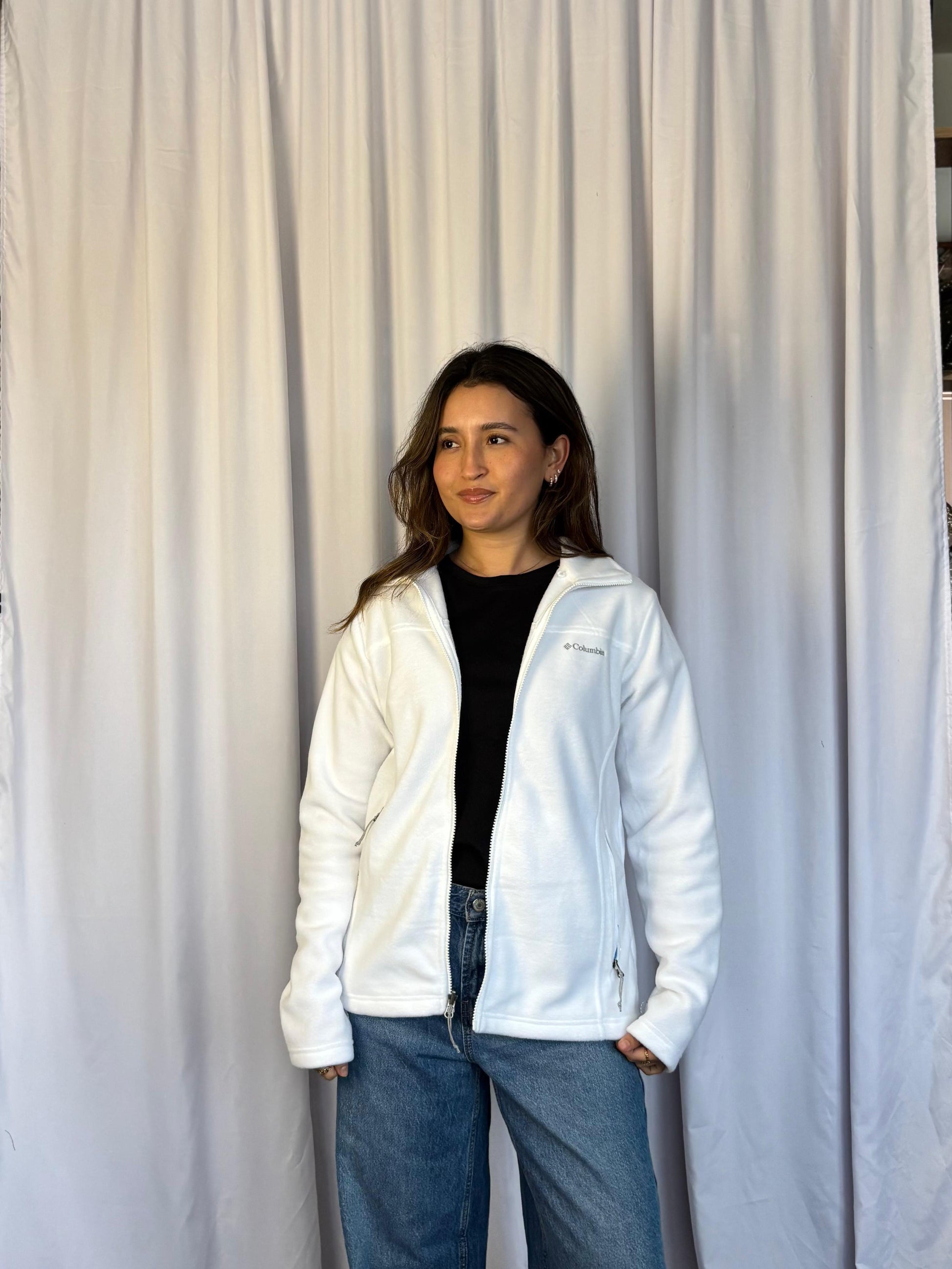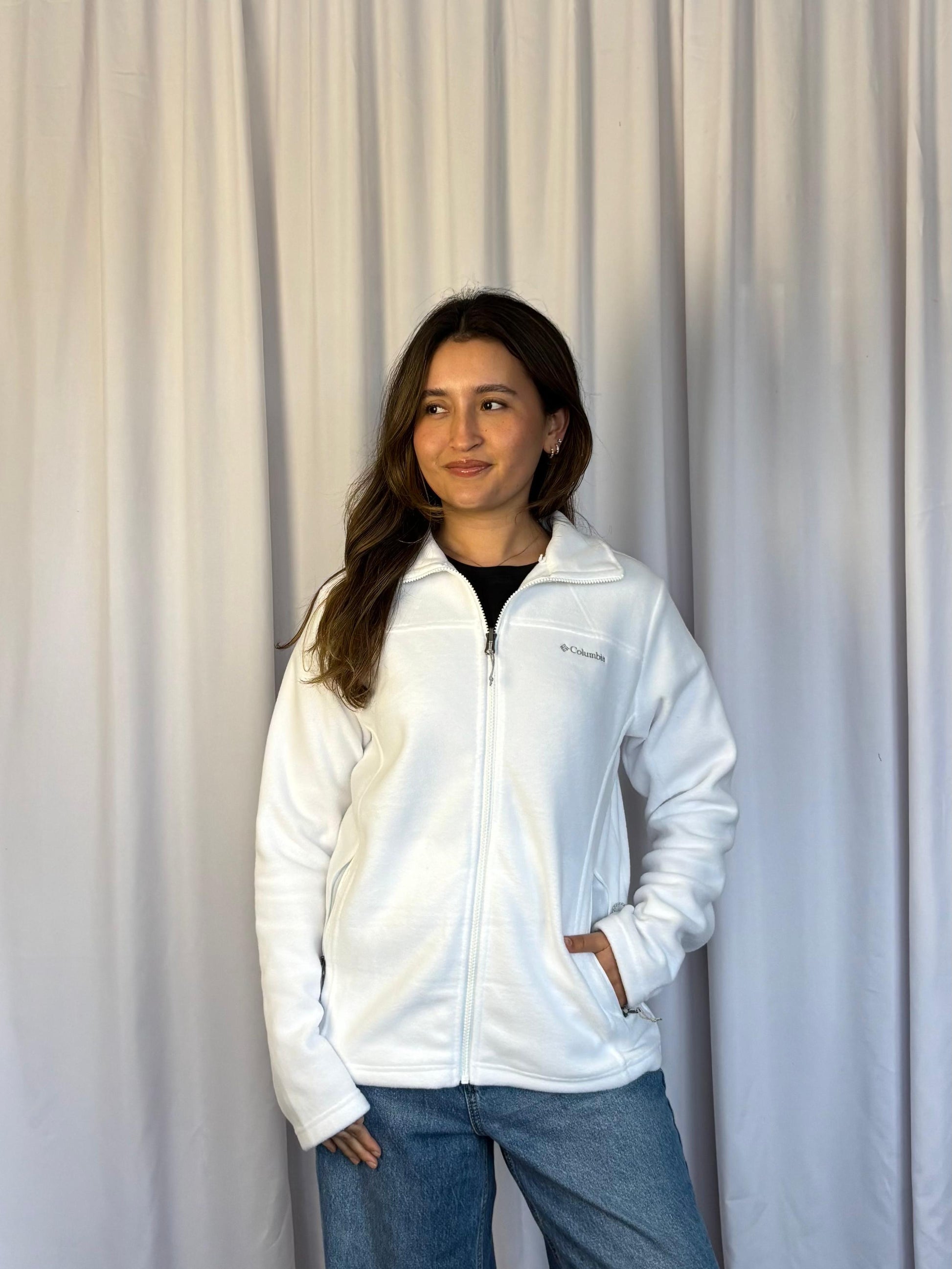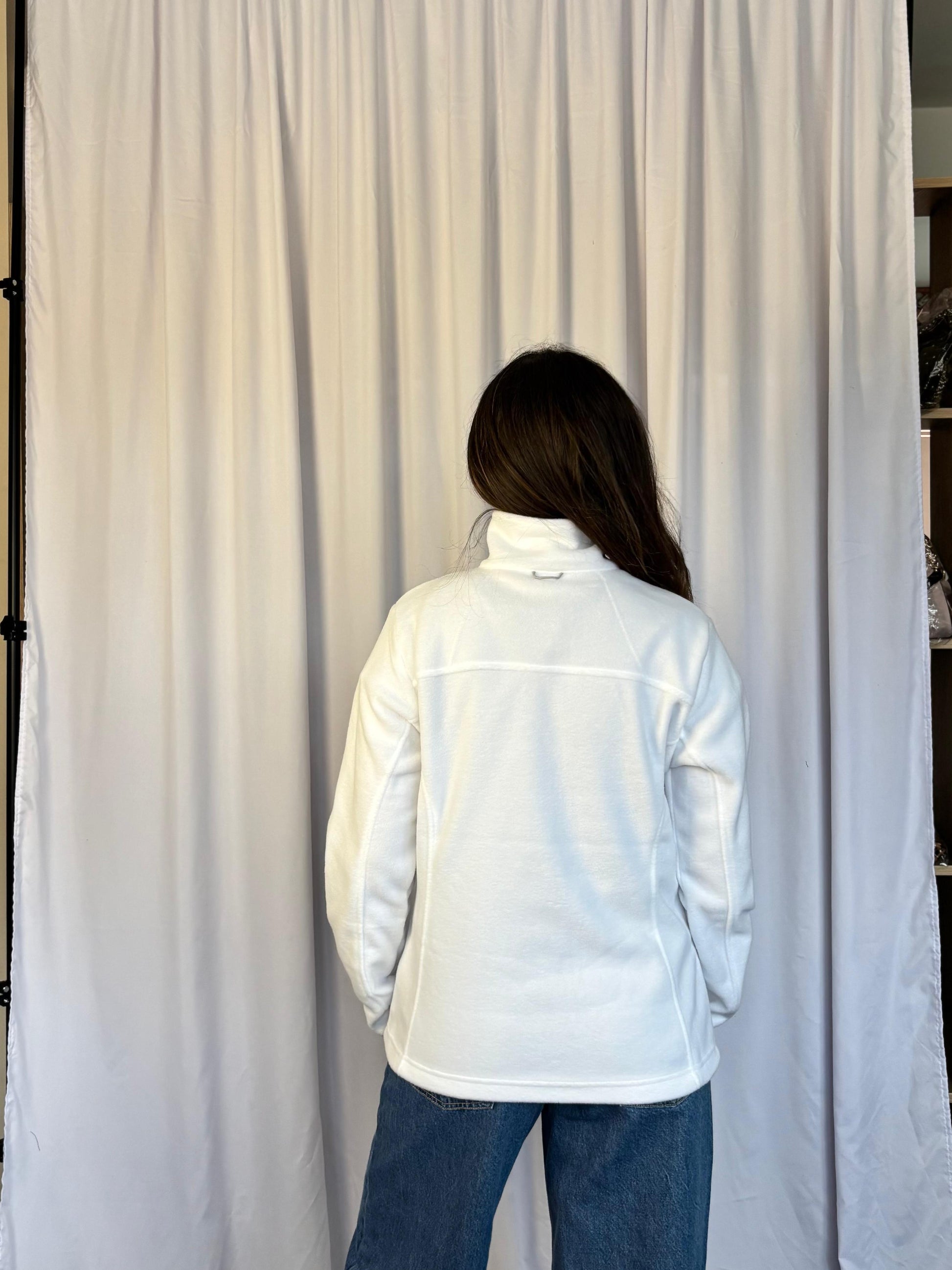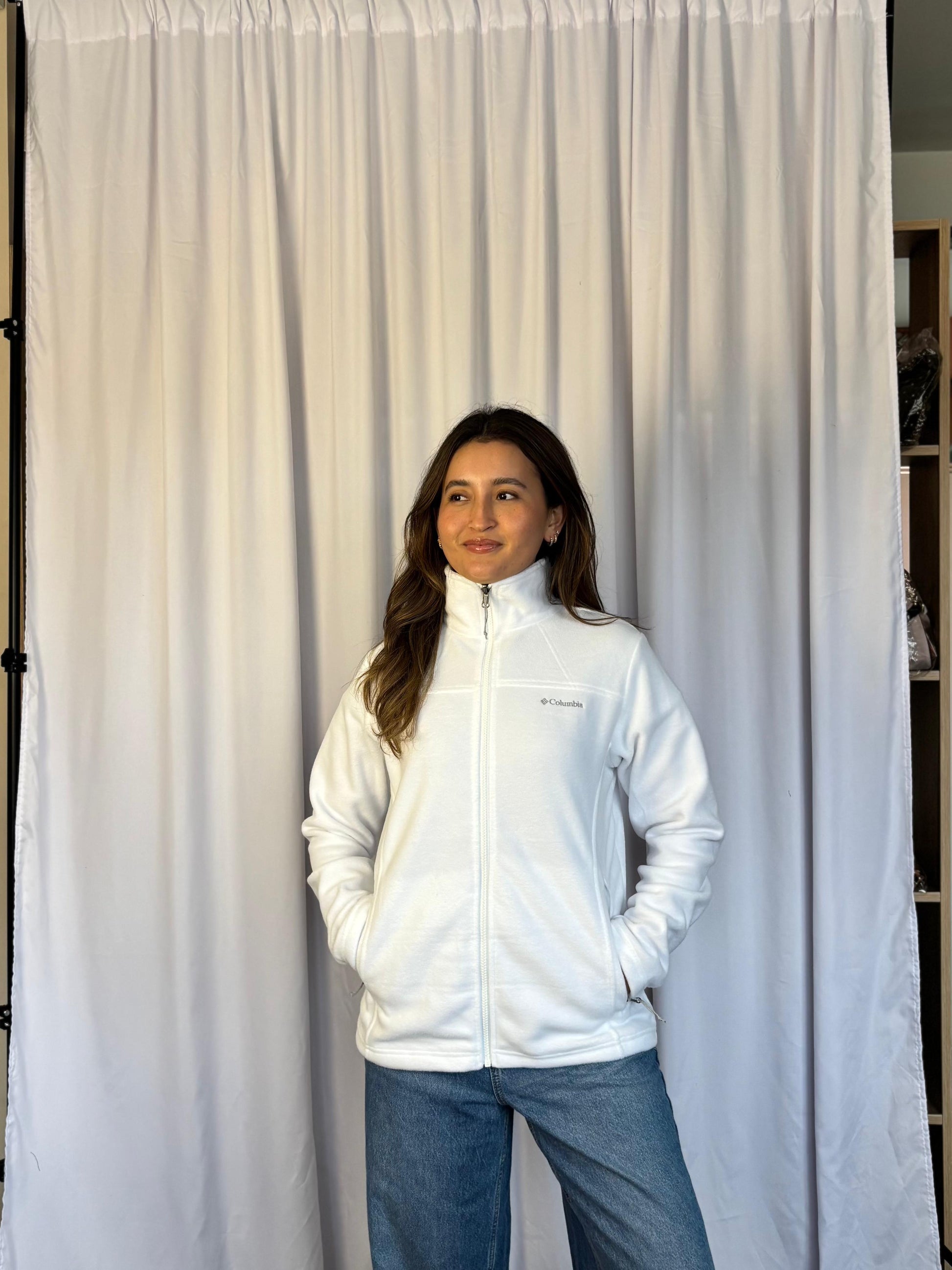 Polar para mujer cierre completo negro, cuello alto, bolsillo a los costados.