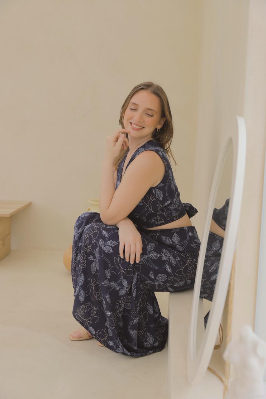 Conjunto de Falda con corte sirena y Blusa envolvente que podrás amarrar de distintas formas.