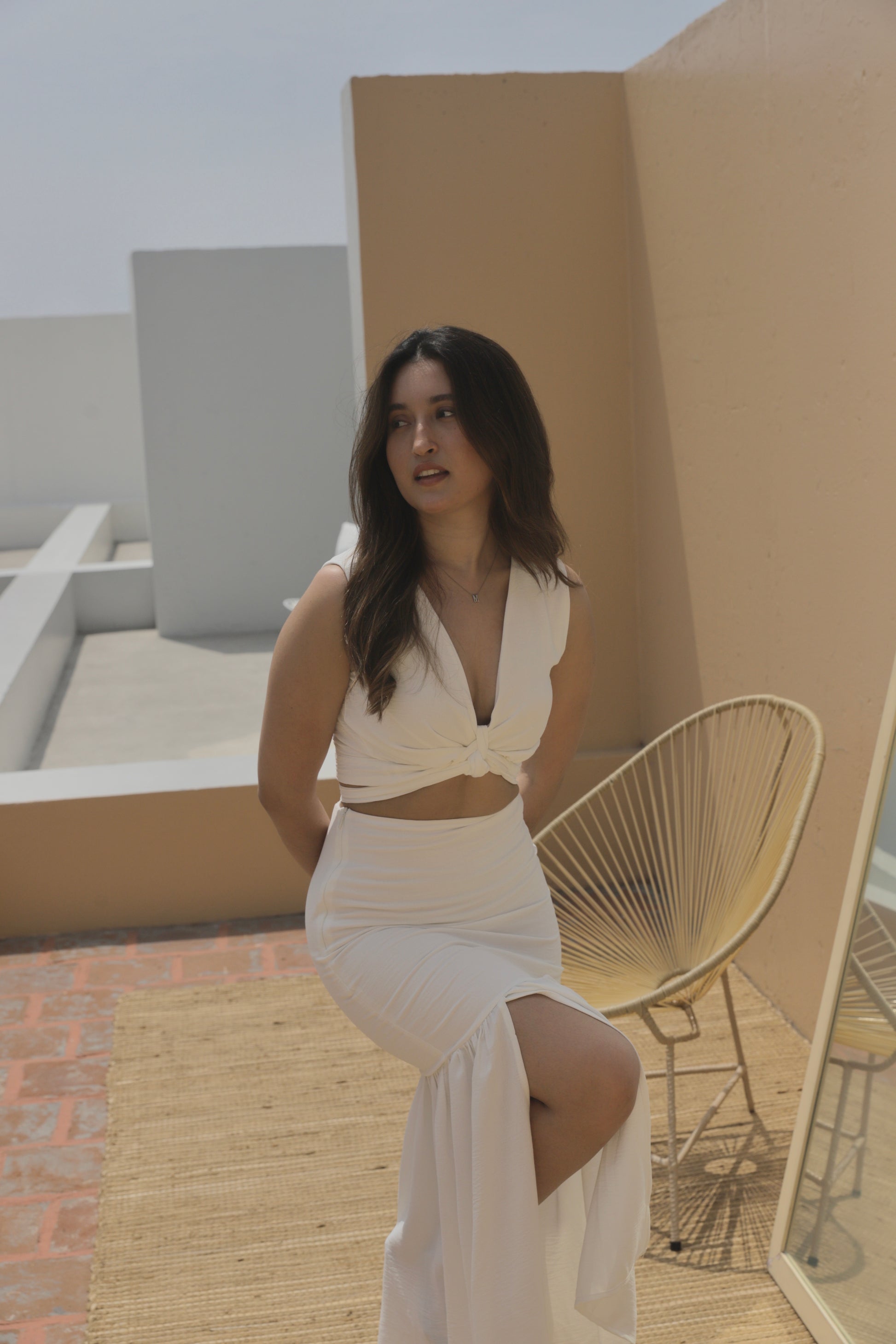 Conjunto de Falda con corte sirena y Blusa envolvente que podrás amarrar de distintas formas.