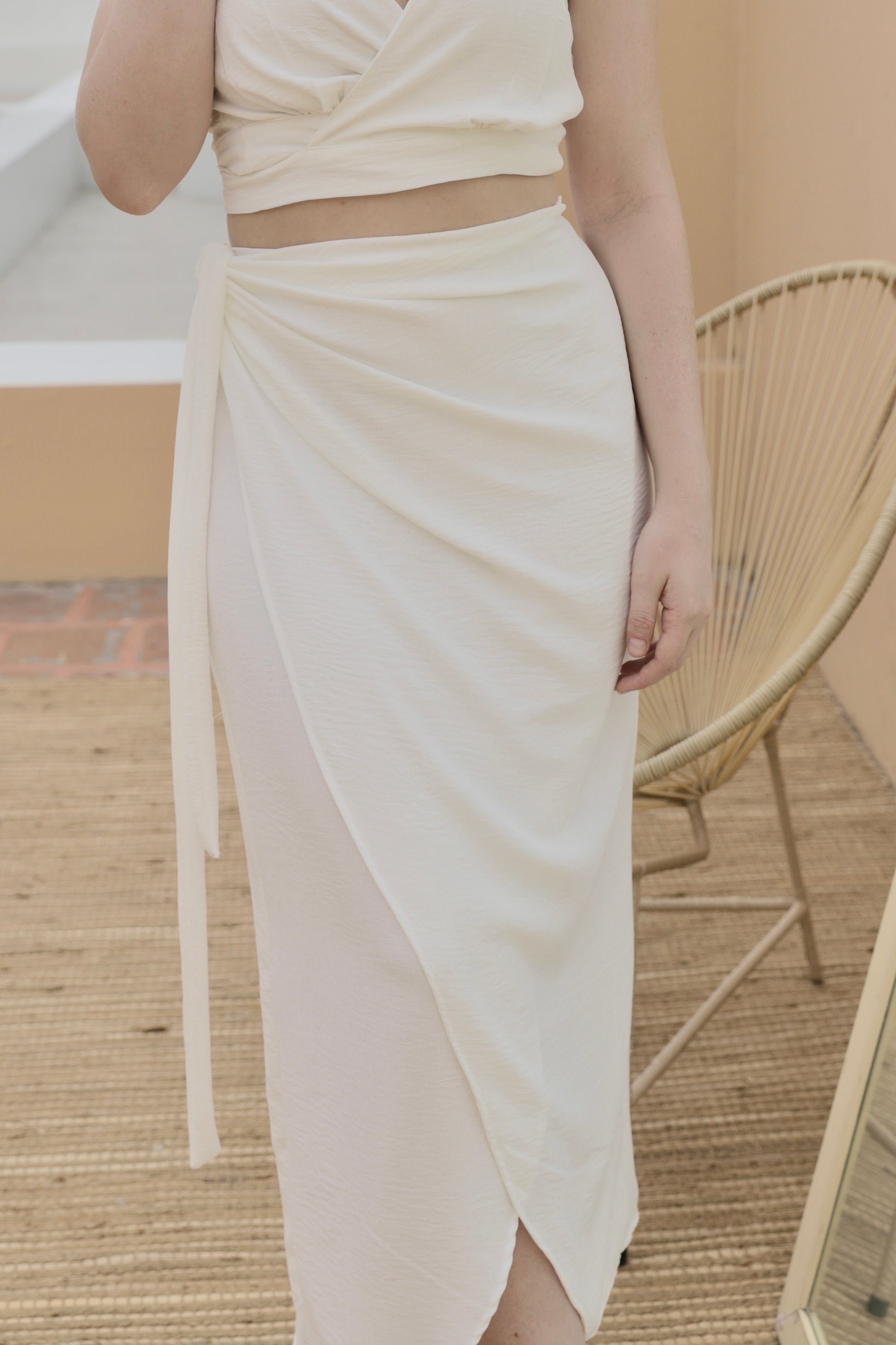 Nuestra falda envolvente Hali te hará resaltar en cualquier lugar, tiene un detalle de drapeado en el delantero muy asentador, para darle un toque elegante a tus outfits.
