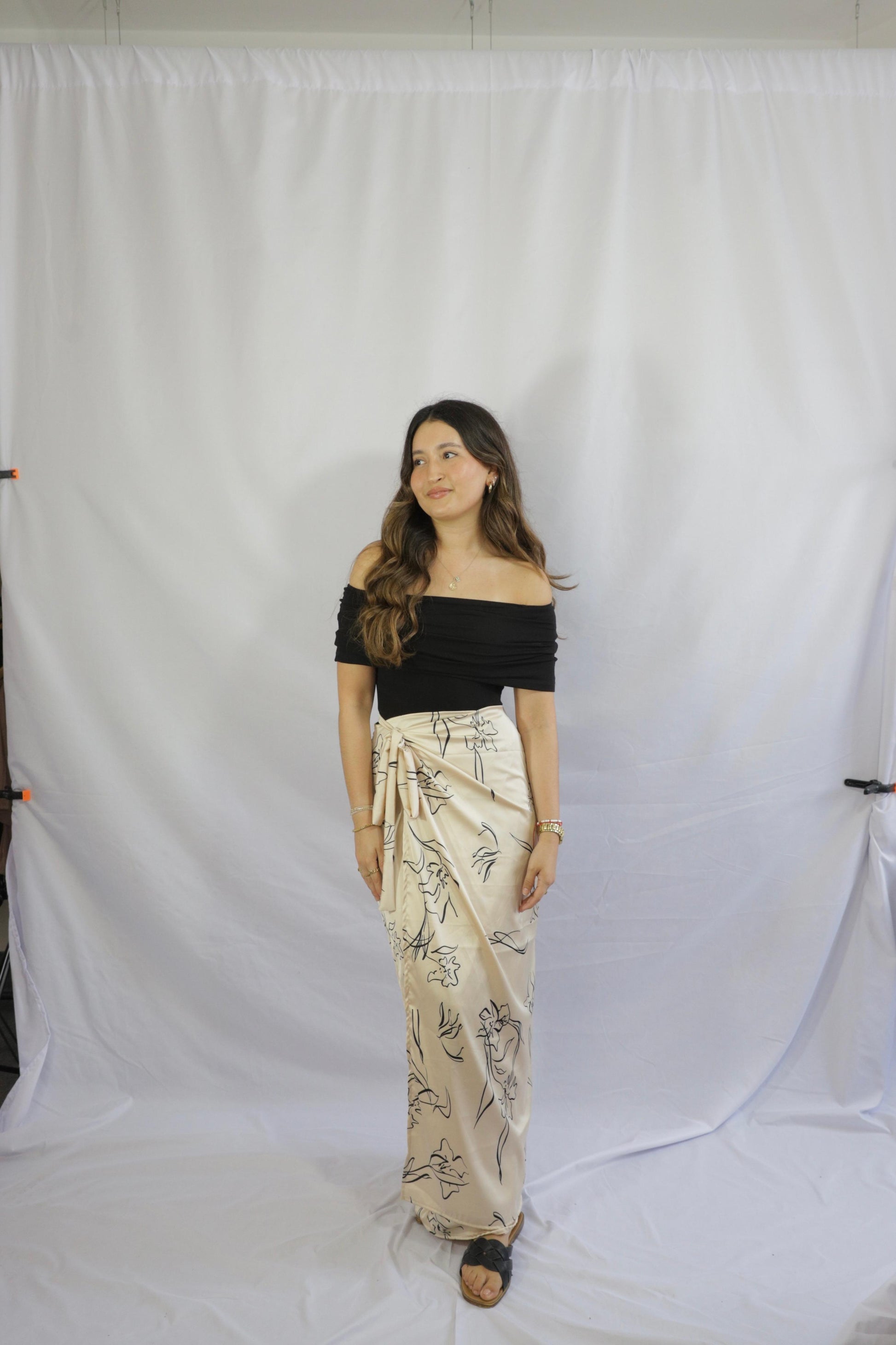 Nuestra falda Luna es una falda envolvente de seda, sublimada con diseño único hecho por nosotras.