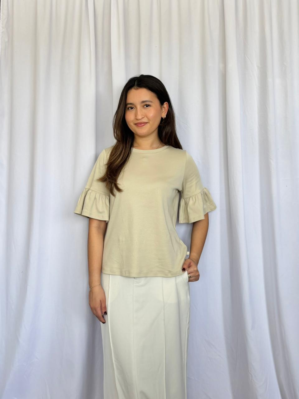 Nuestro polo Olivia destaca por su suavidad, frescura y fit relajado. Su diseño con cuello redondo y bobos en las mangas, lo convierte en una prenda básica elevada y atemporal.