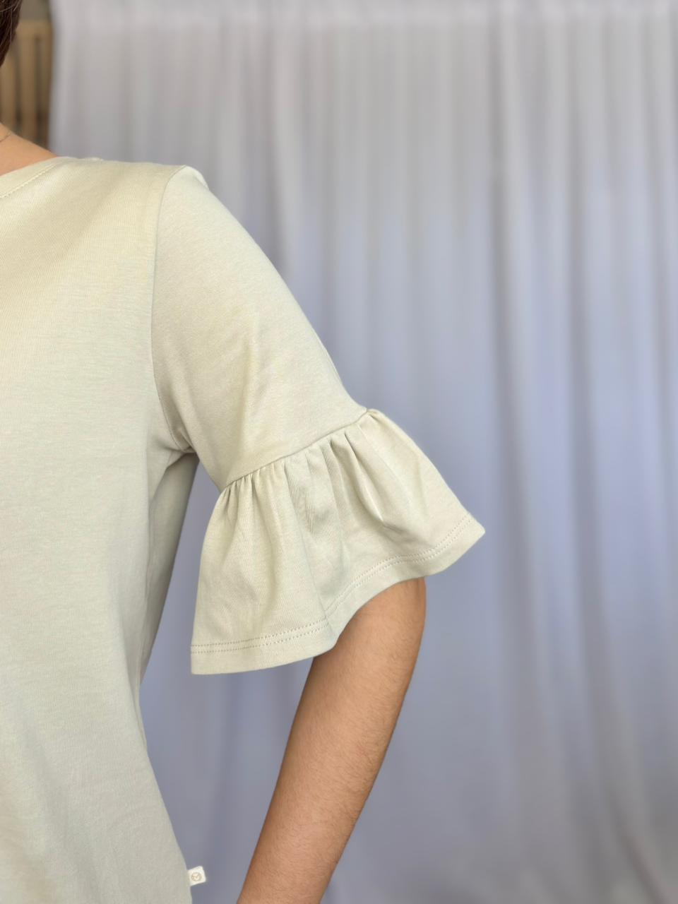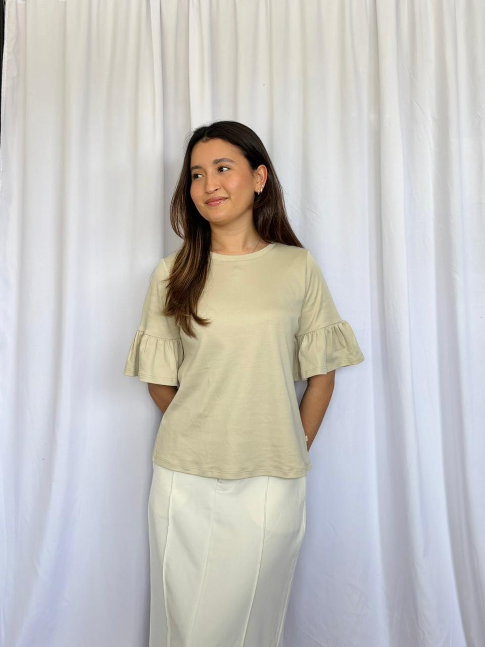 Nuestro polo Olivia destaca por su suavidad, frescura y fit relajado. Su diseño con cuello redondo y bobos en las mangas, lo convierte en una prenda básica elevada y atemporal.
