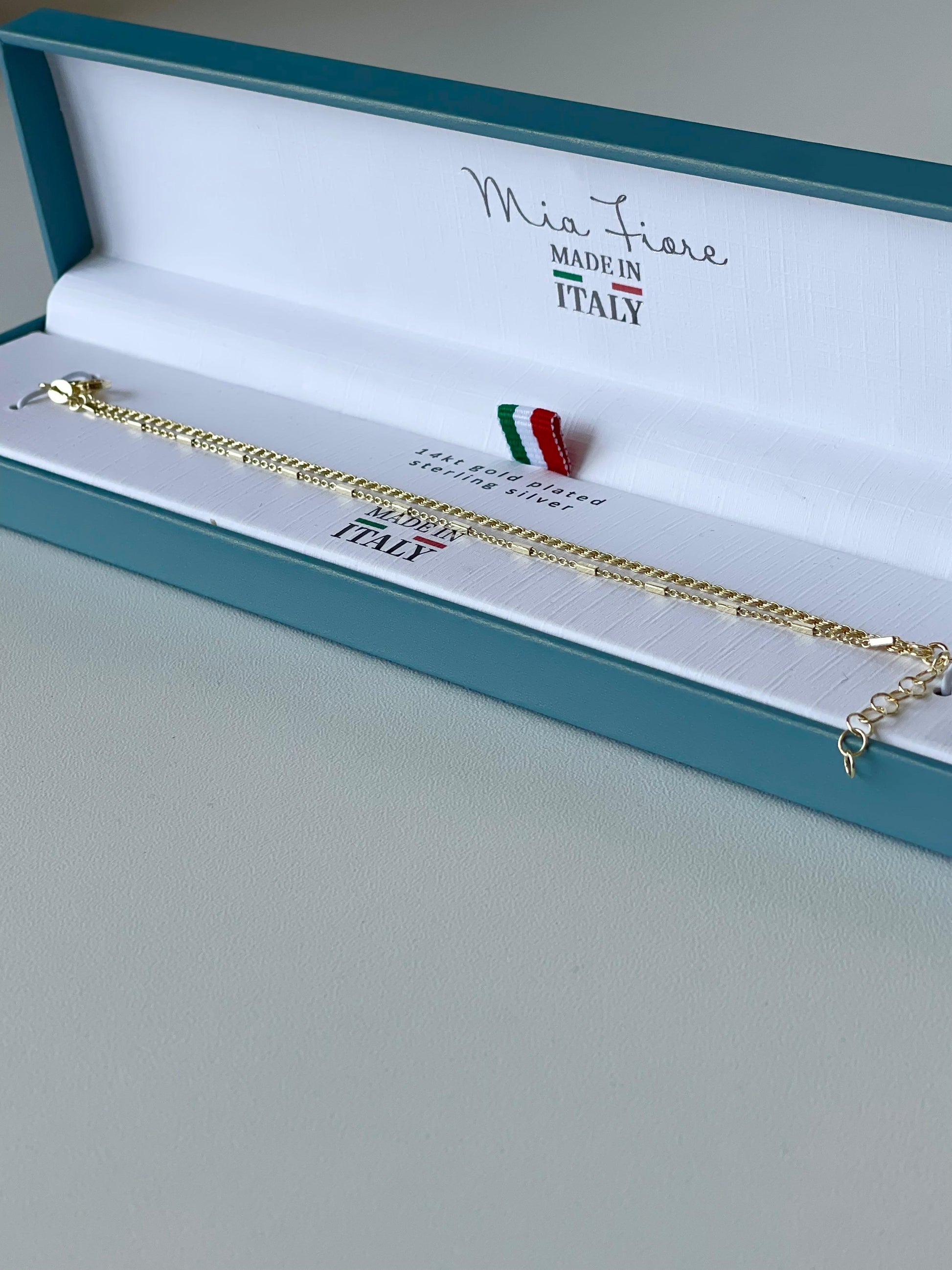 Pulsera Mia Fiore de plata bañado con oro 14k, diseño de eslabones y puntos.