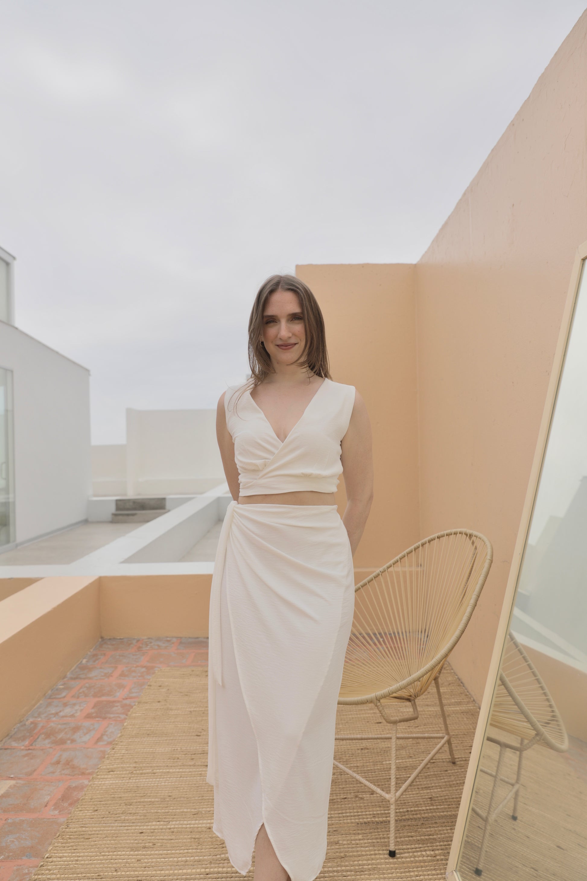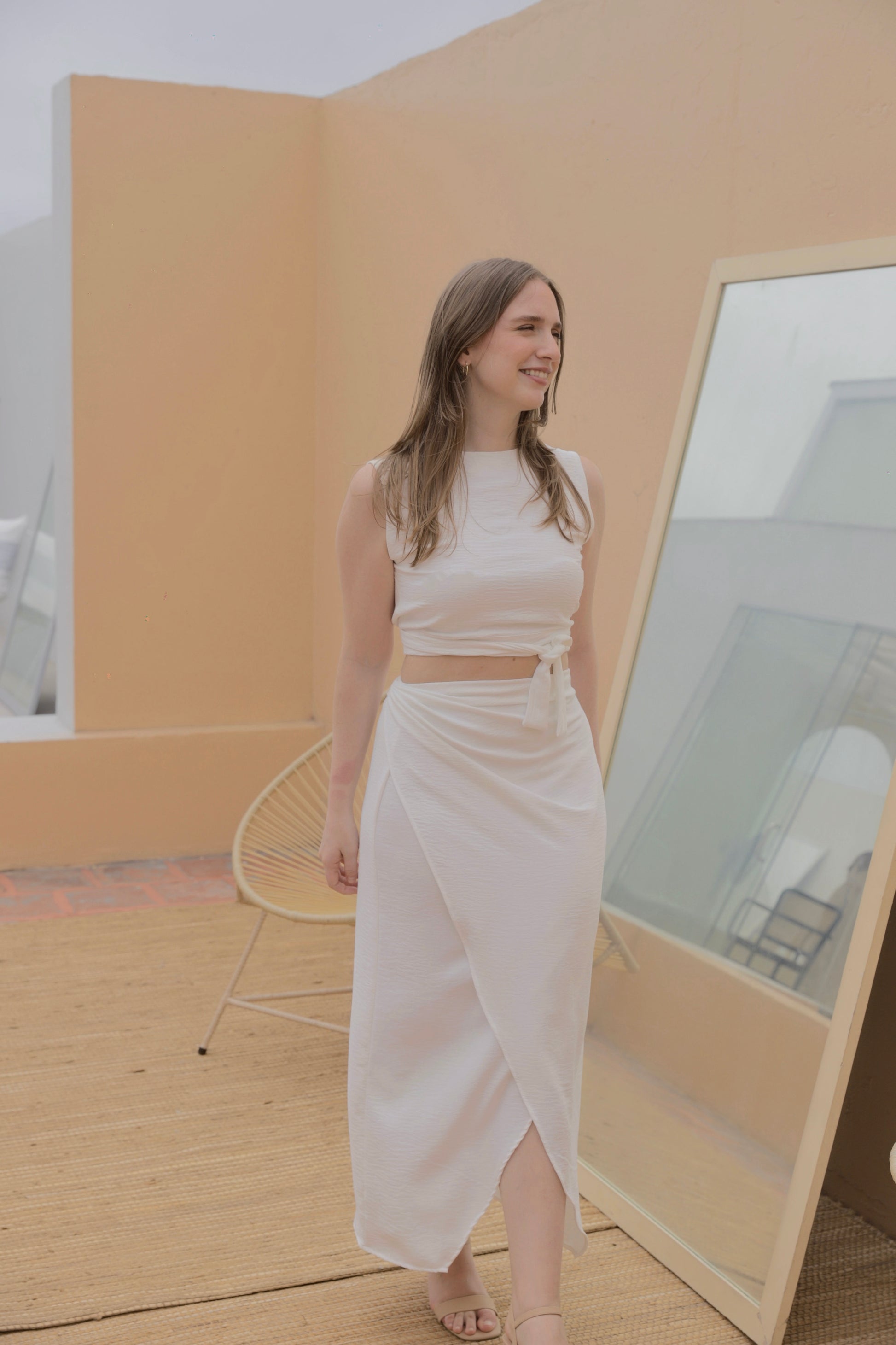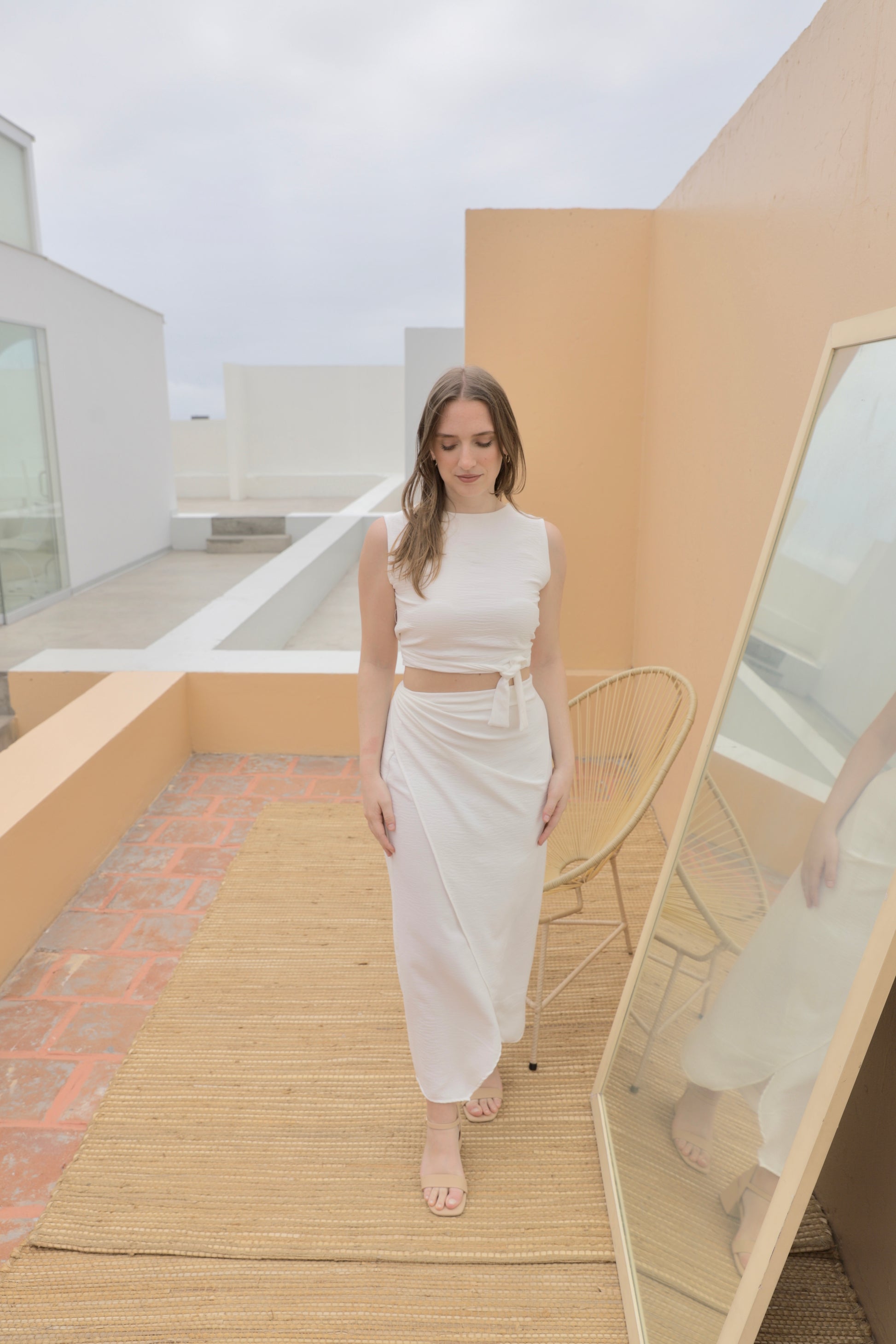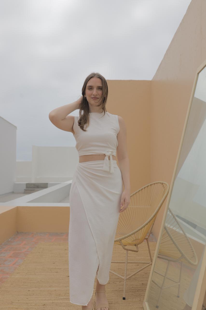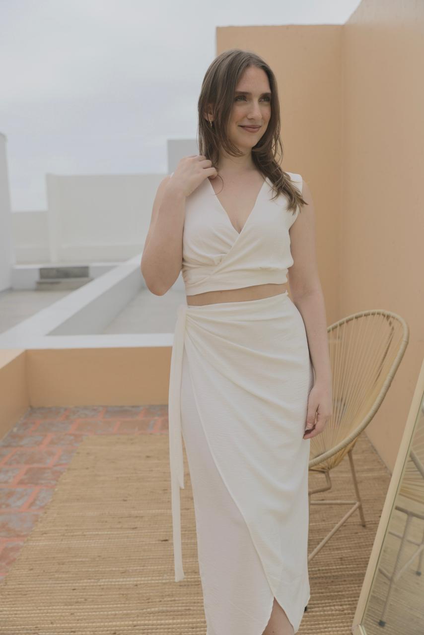 Conjunto de Falda envolvente Hali y Blusa Sirena, ambas piezas podrás amarrarlas de distintas formas.