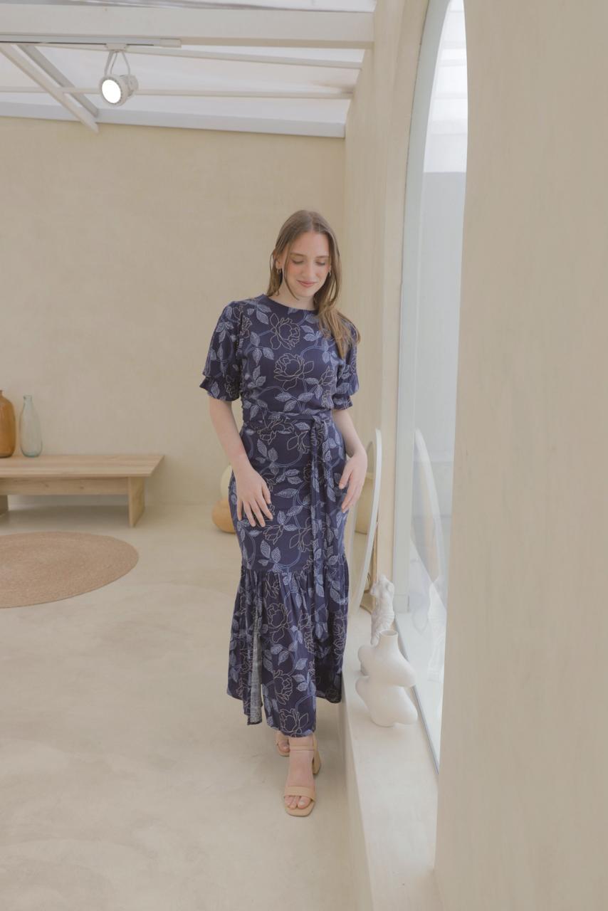 SET FALDA SIRENA / BLUSA HALI - AZUL FLOREADO