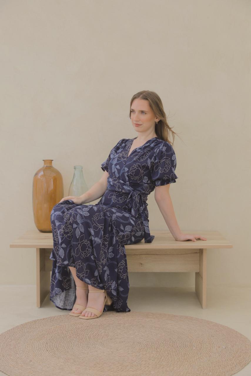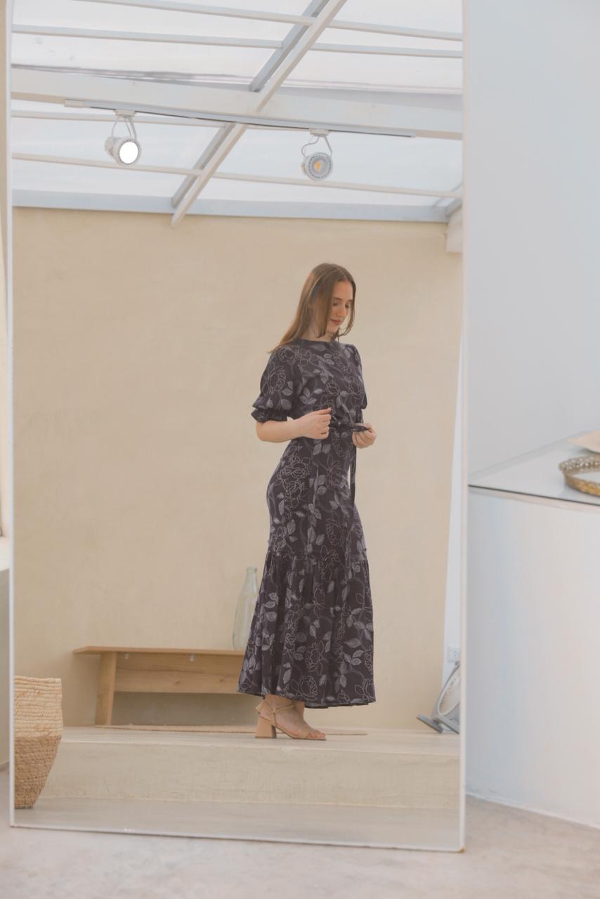 Conjunto de Falda Sirena y Blusa envolvente con mangas abullonadas Hali que podrás amarrar de distintas formas.