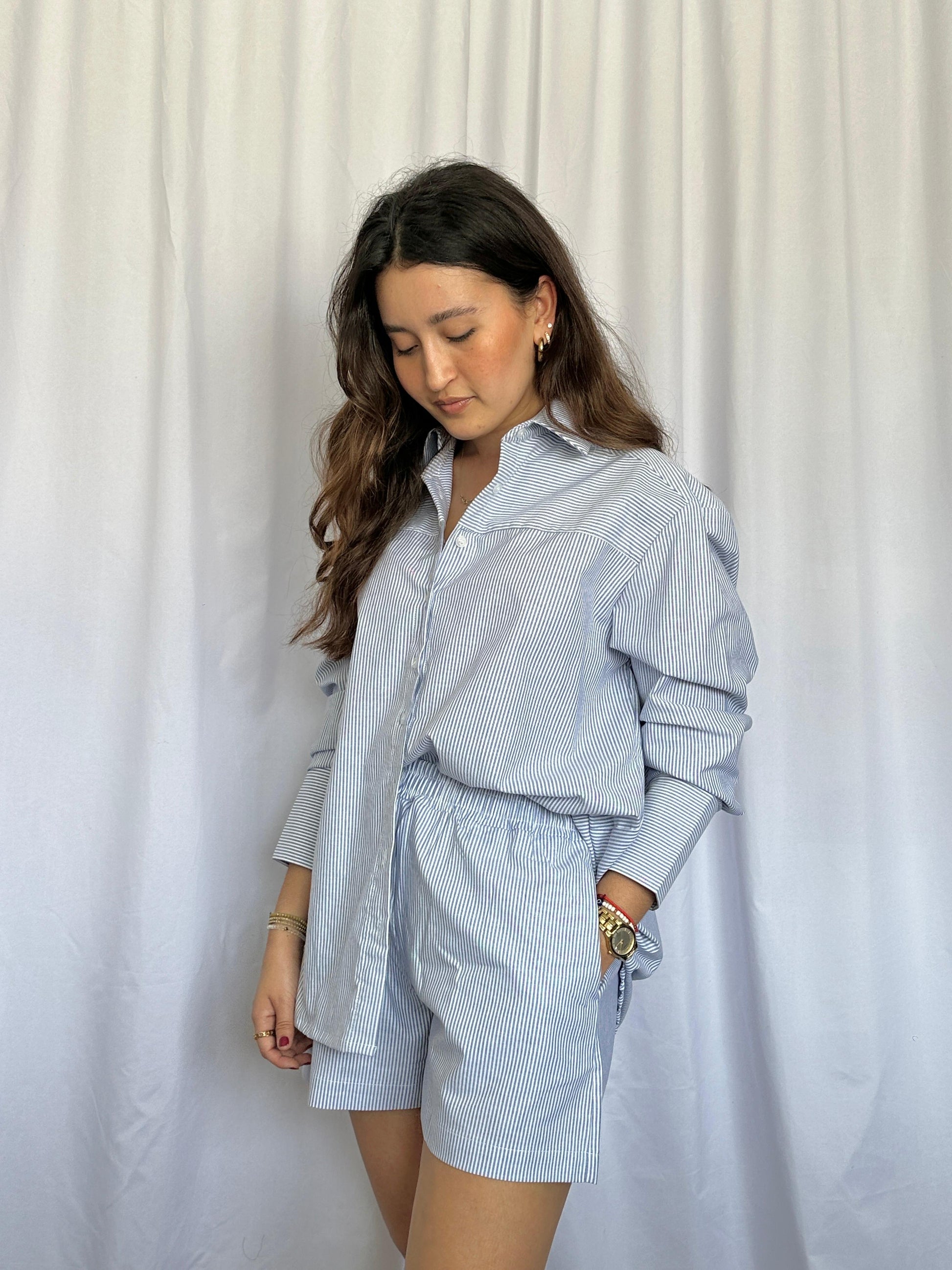 Nuestro short Mia es una prenda cómoda con elástico en la cintura y bolsillos a los costados. Perfecta para usarla con su conjunto para un look más elevado.