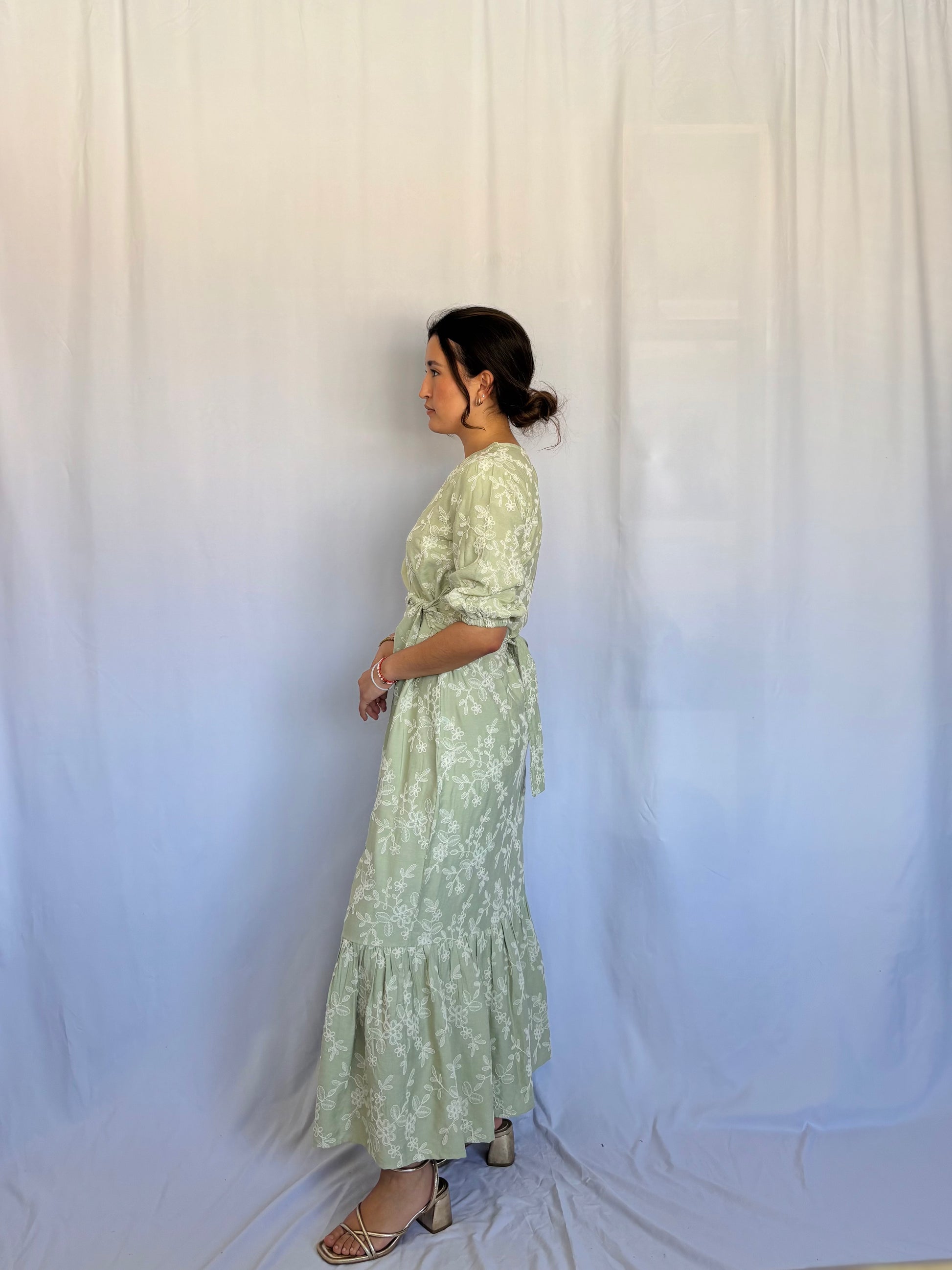 Nuestro vestido Kaia tiene un escote en V, con su silueta envolvente se ajusta a la cintura y cae delicadamente, creando una forma favorecedora y sofisticada.