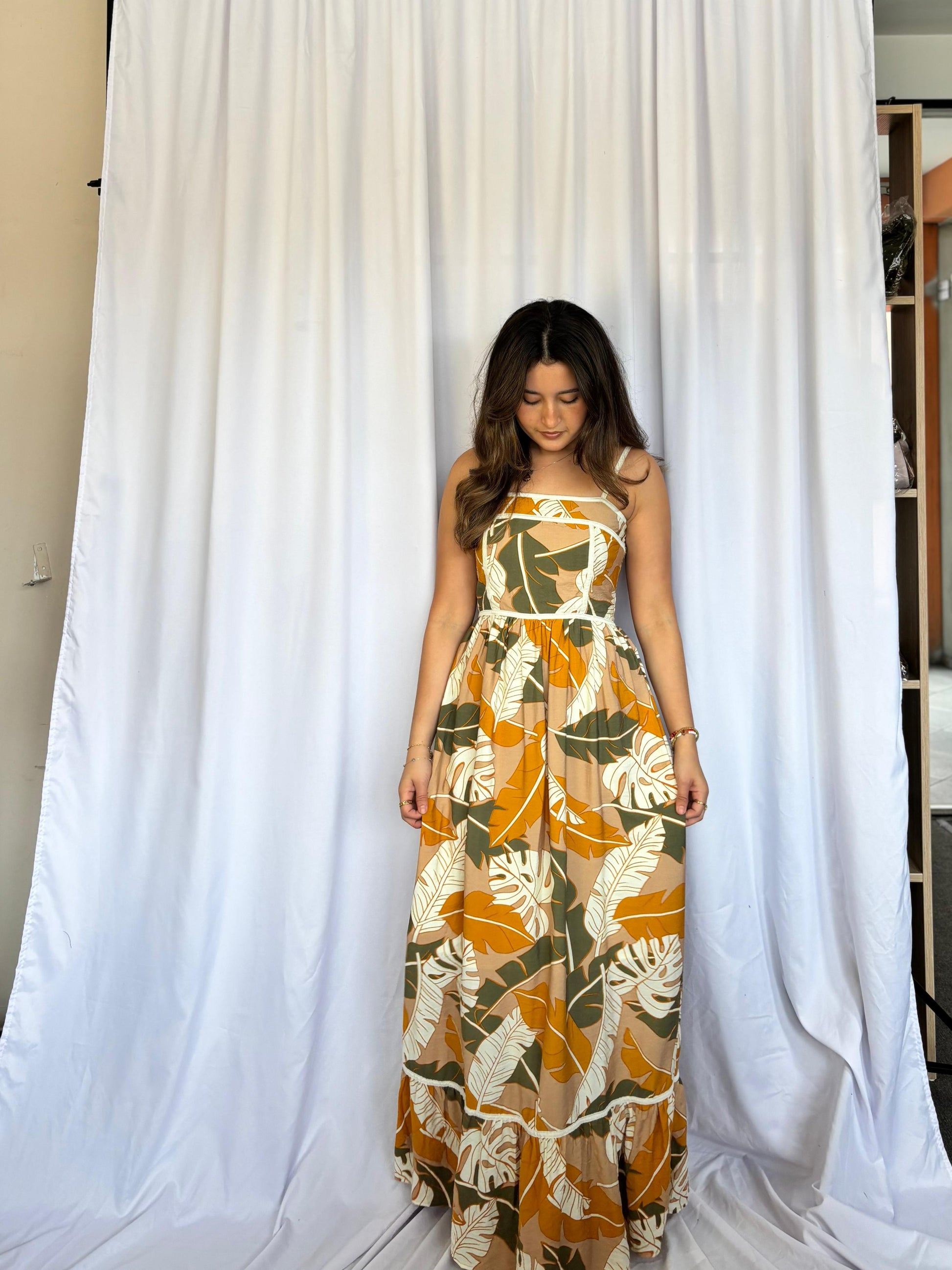 VESTIDO SINCERELY JULES HOJAS - MOSTAZA